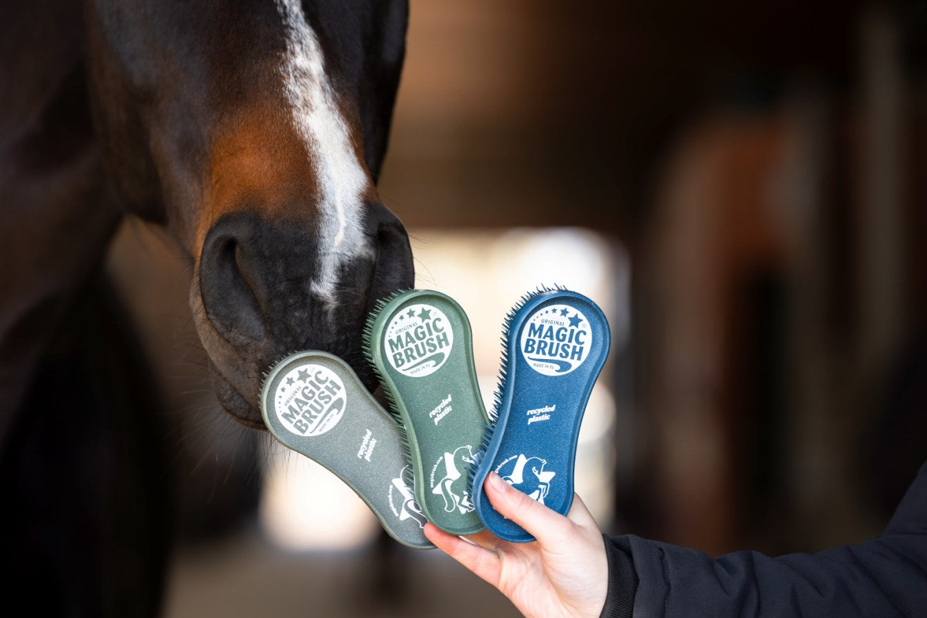 Für mehr Nachhaltigkeit im Putzkasten: Das MagicBrush-Set Cornflowers in angesagten Farbtönen ist aus recyceltem PE gefertigt. Dazu werden gebrauchte Kunststoffverpackungen sortiert und zu Granulat zerkleinert. Dies ist das Ausgangsmaterial für neue Kunststoffprodukte - wie das MagicBrush Cornflowers recycled.